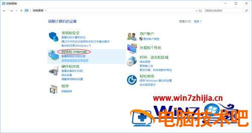 4、接下来设置共享的高级选项。进入到控制面板菜单,然后点击网络和 Internet 选项。