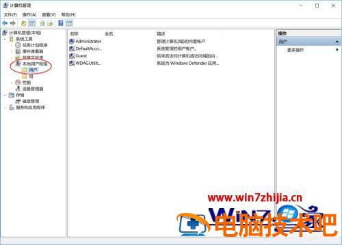 2、进入到计算机管理后,点开本地用户和组,然后再点击用户,然后在右侧的用户列表中,可以看到 Guest 账户。