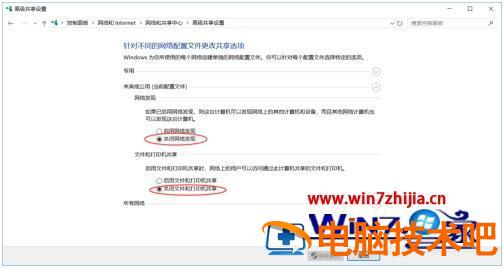 7、将来宾或公用下的网络发现设置为启用网络发现,另外将文件和打印机共享也设置为启用,然后保存更改退出。这样基本上就可以访问本机的共享内容了。