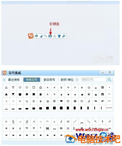 1、首先点击如图所示的软键盘,然后会出现“特殊符号”和“软键盘”两个选项,点击“特殊符号”。