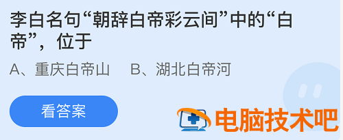 蚂蚁庄园7月14日答案最新是什么呢,蚂蚁庄园是支付宝中很多用户每天必定进入的小程序哦。这里的小鸡每天都等待玩家喂养,而且通过喂养获得的爱心蛋可以帮助全国的困难群体进行献爱心,只需要进入庄园小课堂里回答问题就可以了。2022年7月14日蚂蚁庄园答案这就带给用户们它的正确答案。蚂蚁庄园7月14日答案最新1.李白名句“朝辞白帝彩云间”中的“白帝” ,位于重庆白帝山湖北白帝河2.正确答案:重庆白帝山3.答