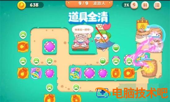 保卫萝卜4游戏里面每一关都是全新的元素,玩家可以自由的选择进行挑战,很多玩家在闯关的时候遇到了很多的难题,需要反复的闯关,例如第30关,里面包含了九波敌人,其中有六种兔子需要去战斗,小偷和木桶兔子非常的狡猾,需要使用火力攻击,瓶子炮的攻击速度很快,可以用来打场景的道具使用,小编为玩家带来了保卫萝卜4第30关通关攻略。保卫萝卜4第30关通关攻略:1.第一波在左边和中间位置分布放置风扇塔和瓶子炮,尽可